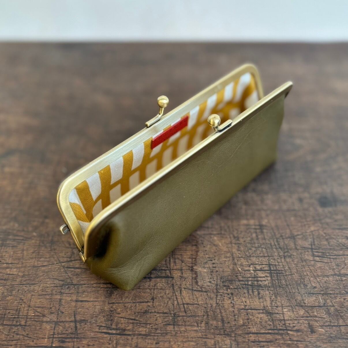 パチンと口金を開ける、がまぐちの眼鏡ケース。