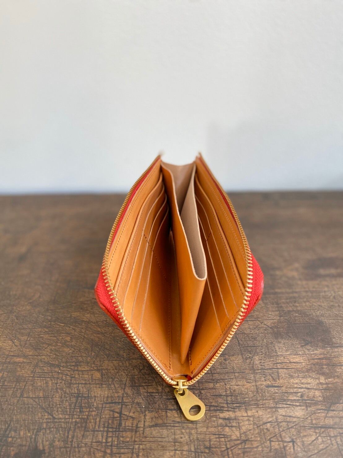 ベジタブルタンニン鞣し製法で時間と手間をかけて丁寧に染めあげられています。落ち着いていて優しい色合いが特徴です。使い込む程深みと艶が増し経年変化を楽しんで頂けます。