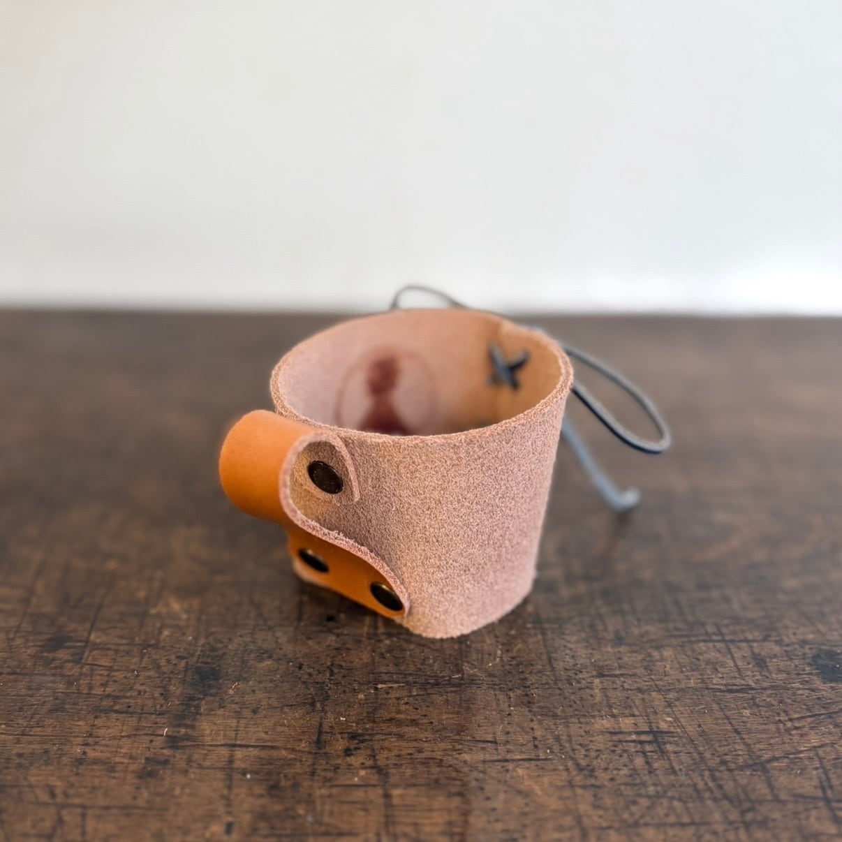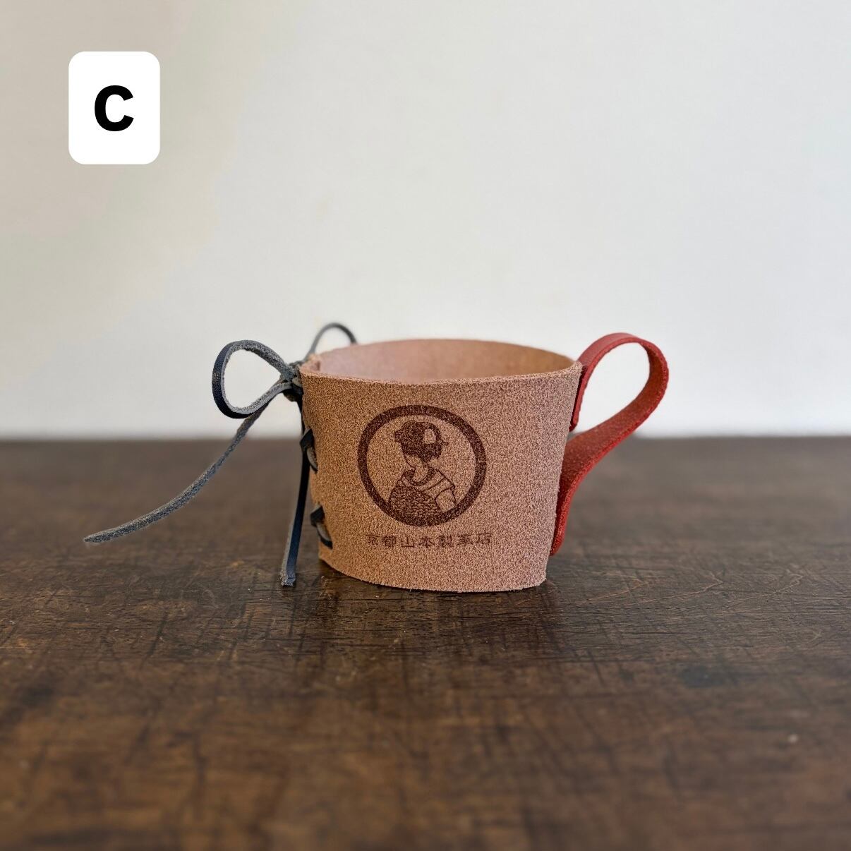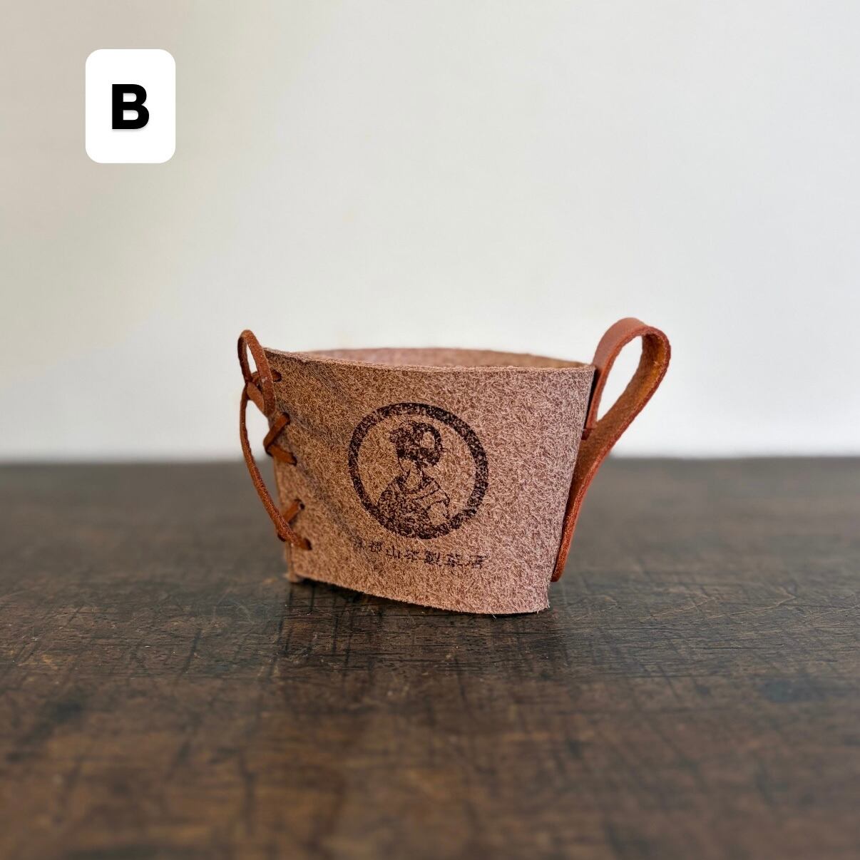 天然素材そのまま用いた牛床革(とこがわ)を使用したカップホルダー。