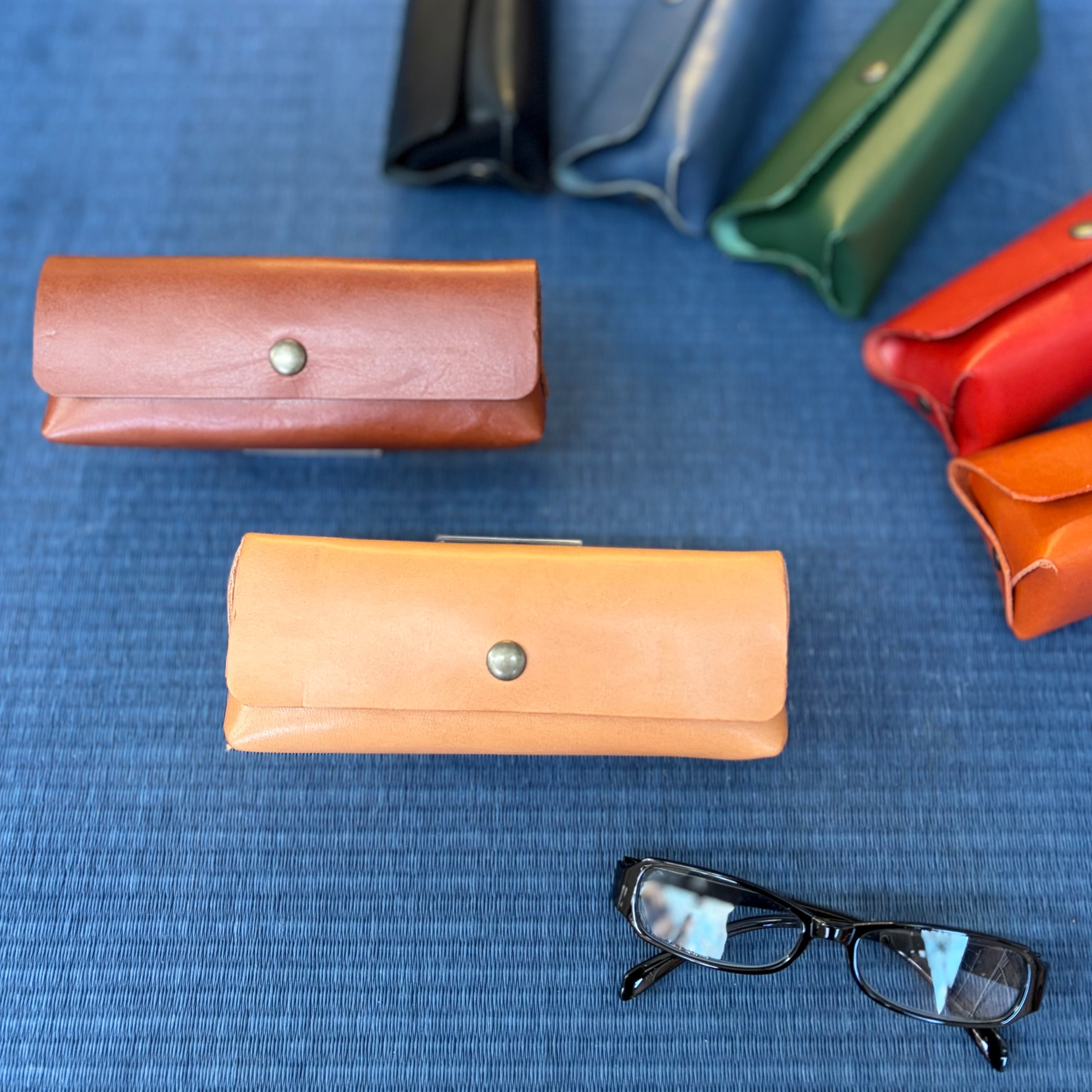 贅沢に革を使う一枚革で、縫わずにお作りしたメガネケース。