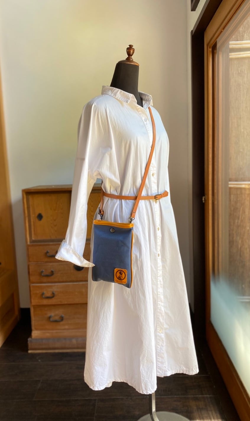 キャンバス素材(帆布6号)に革をあしらったコンパクトなサコッシュです。