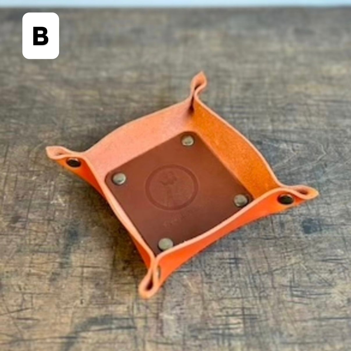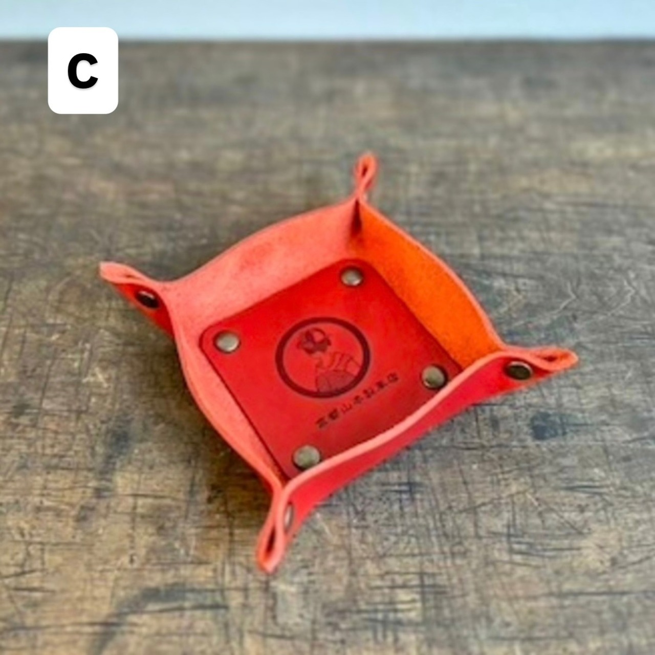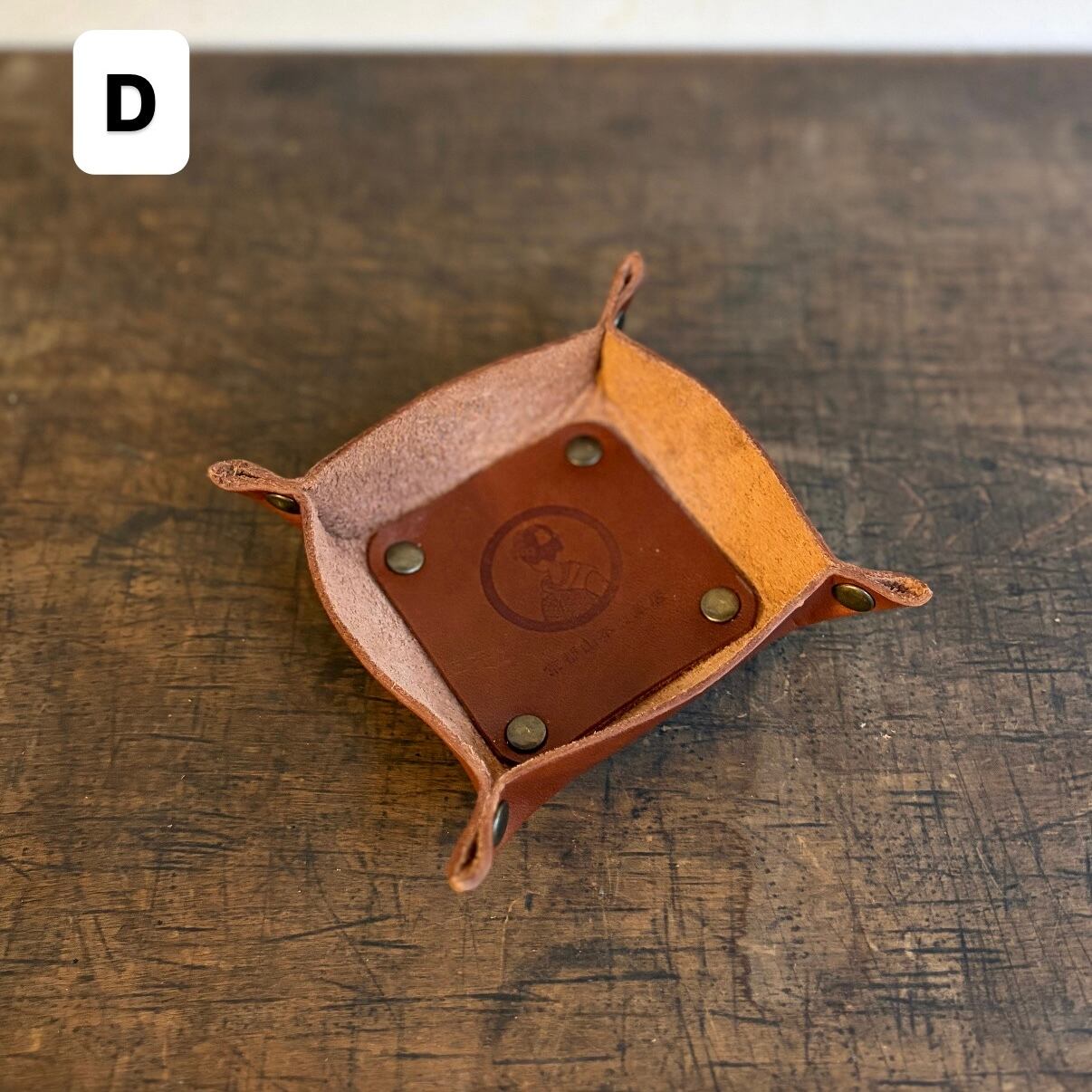 トレイ内側の革(焼印が押されている部分)は、外側と同じ色でお作りします。