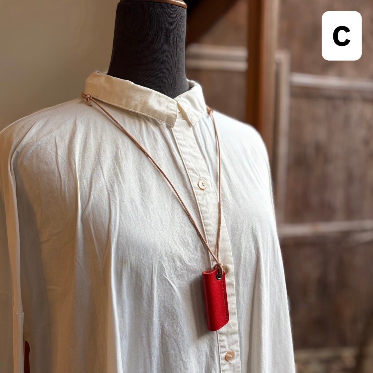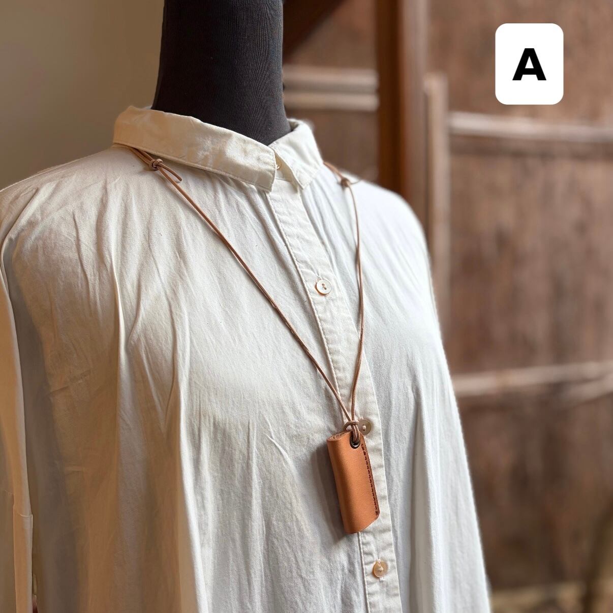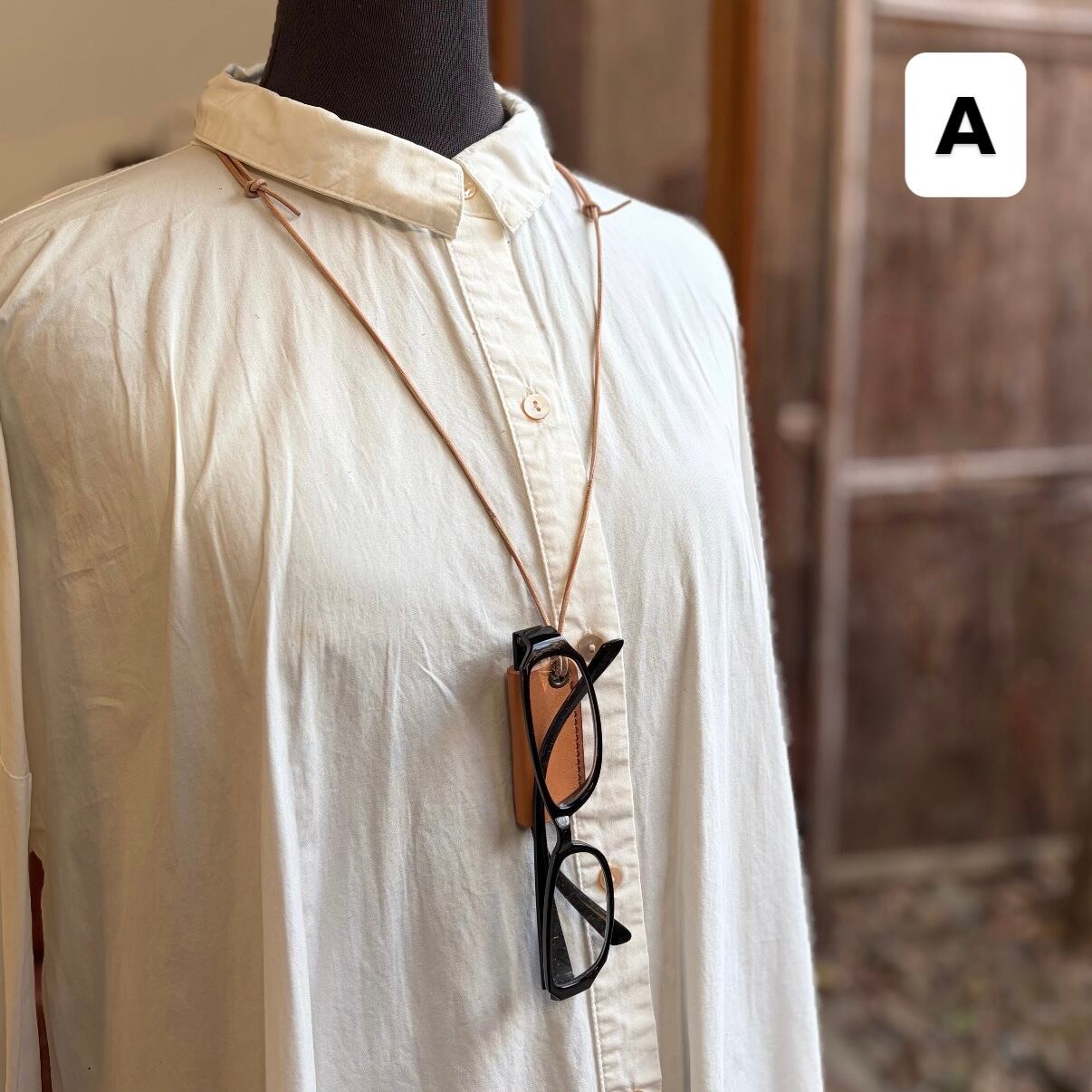 栃木レザーを使用したペンダントタイプのメガネホルダーです。