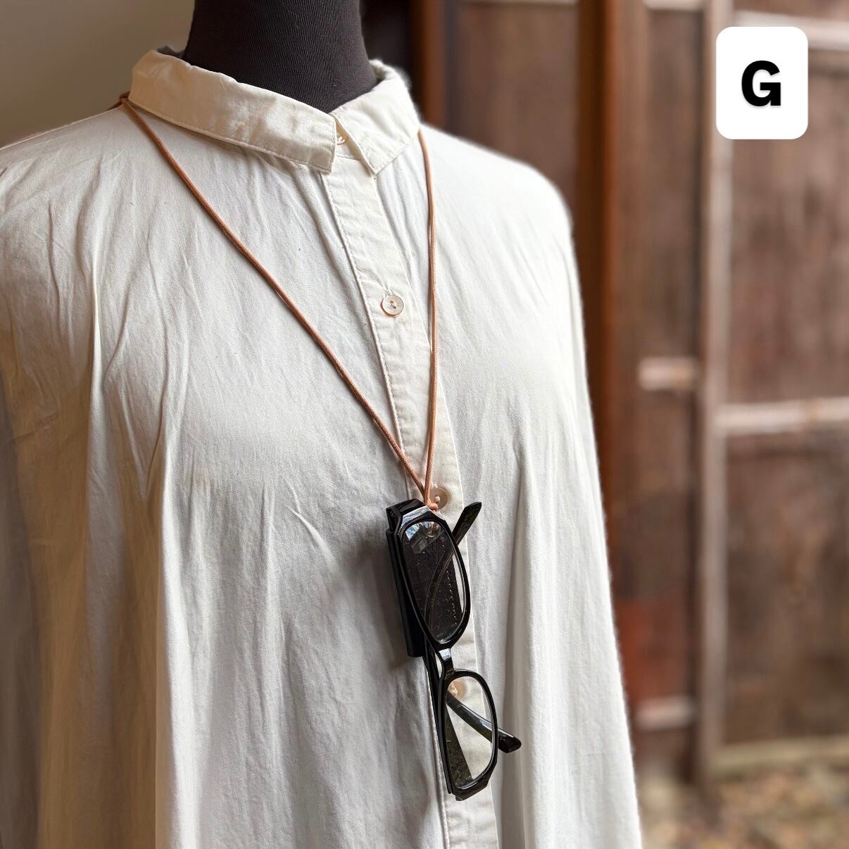 ちょっとメガネを外しておきたい時に、胸元にメガネを引っ掛けておくことができます。