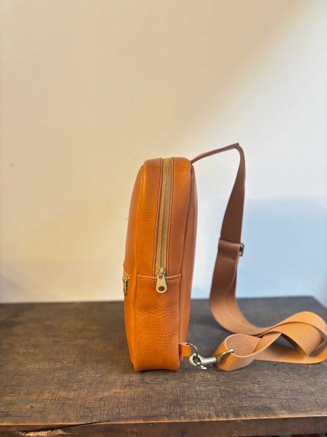 上質な国産栃木レザーを贅沢に使用し、職人の手作業によって仕上げられたボディバックです。