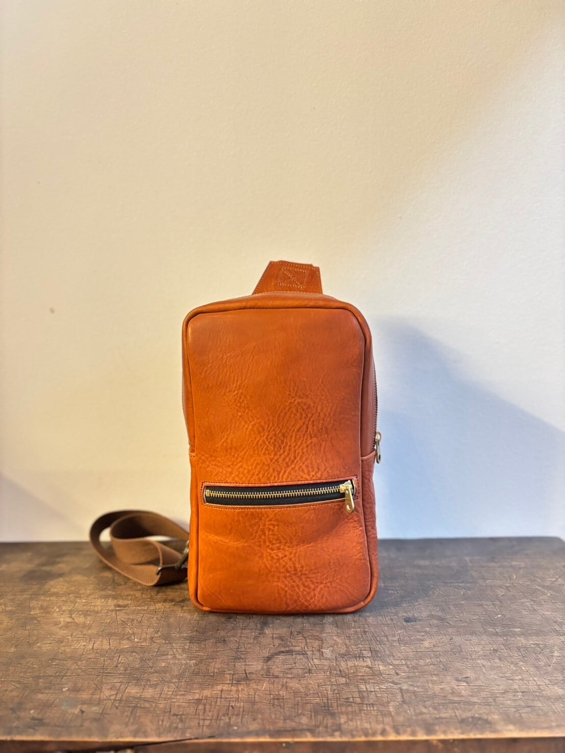 上質な国産栃木レザーを贅沢に使用し、職人の手作業によって仕上げられたボディバックです。