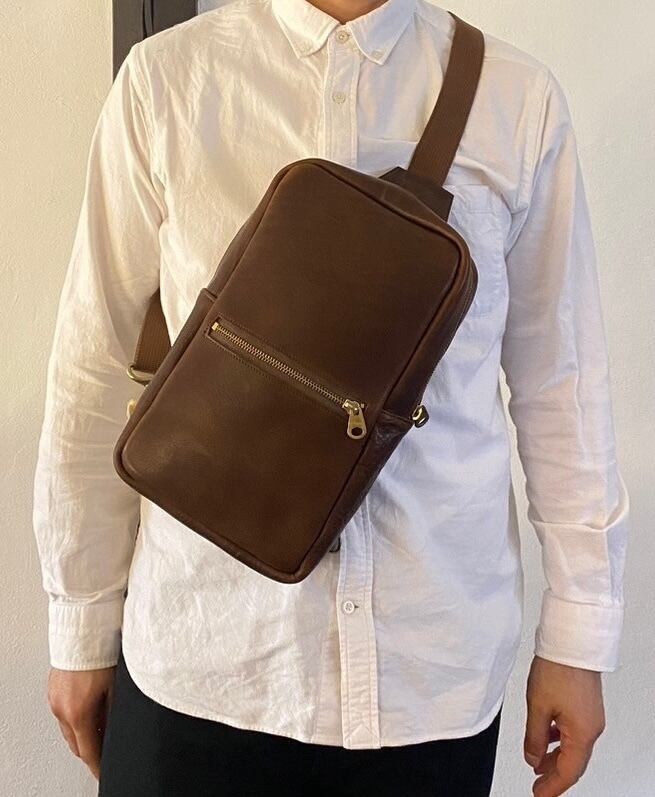 上質な国産栃木レザーを贅沢に使用し、職人の手作業によって仕上げられたボディバックです。